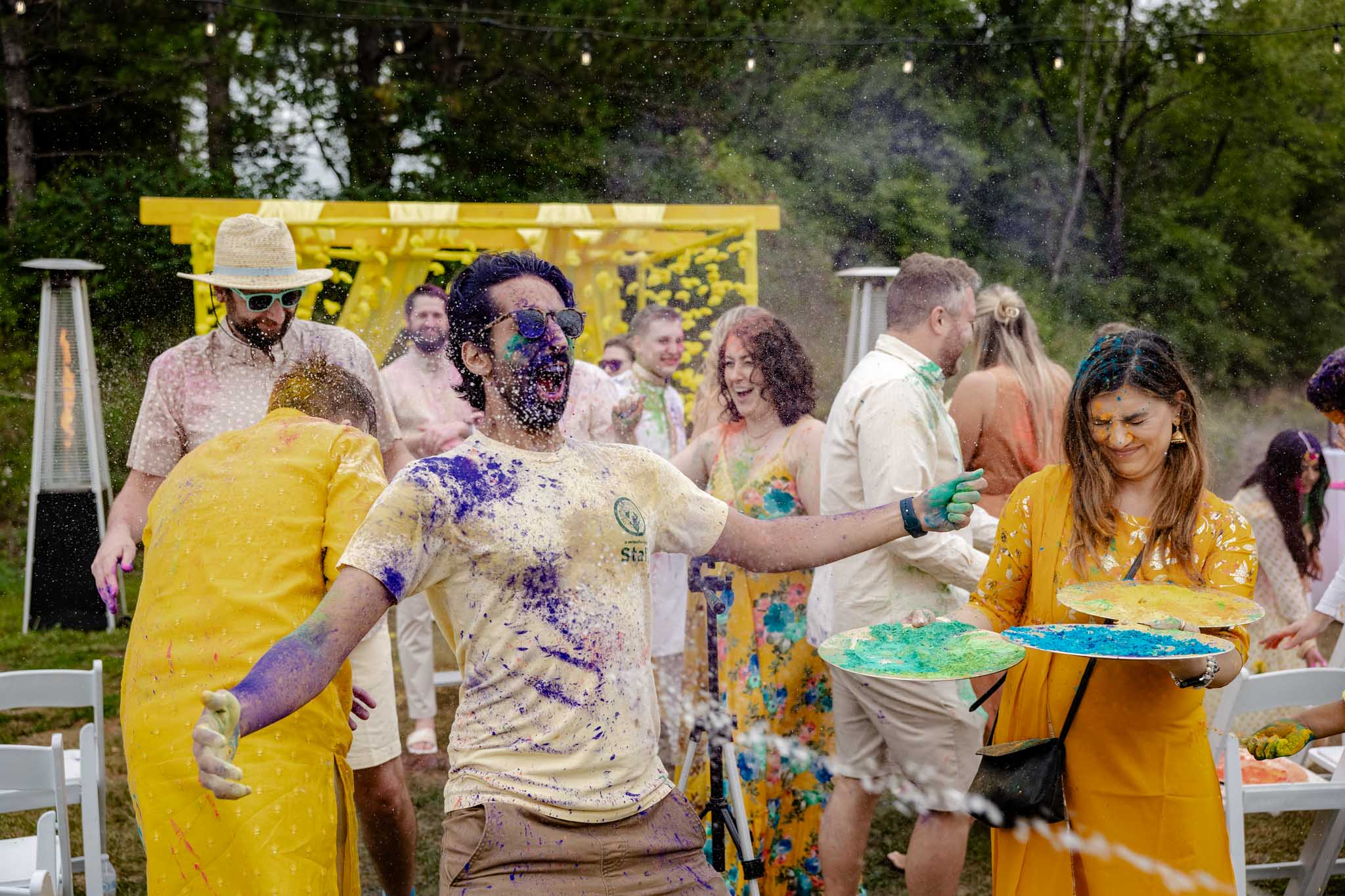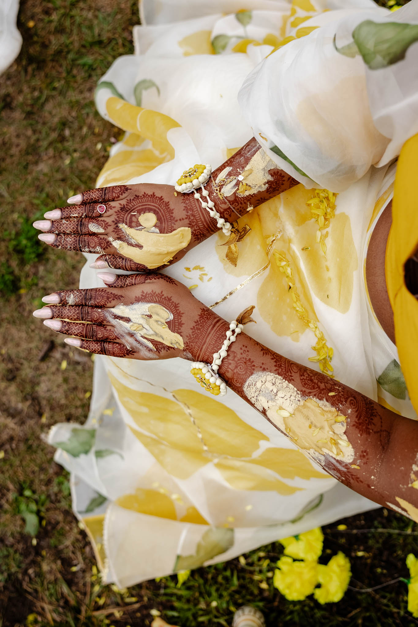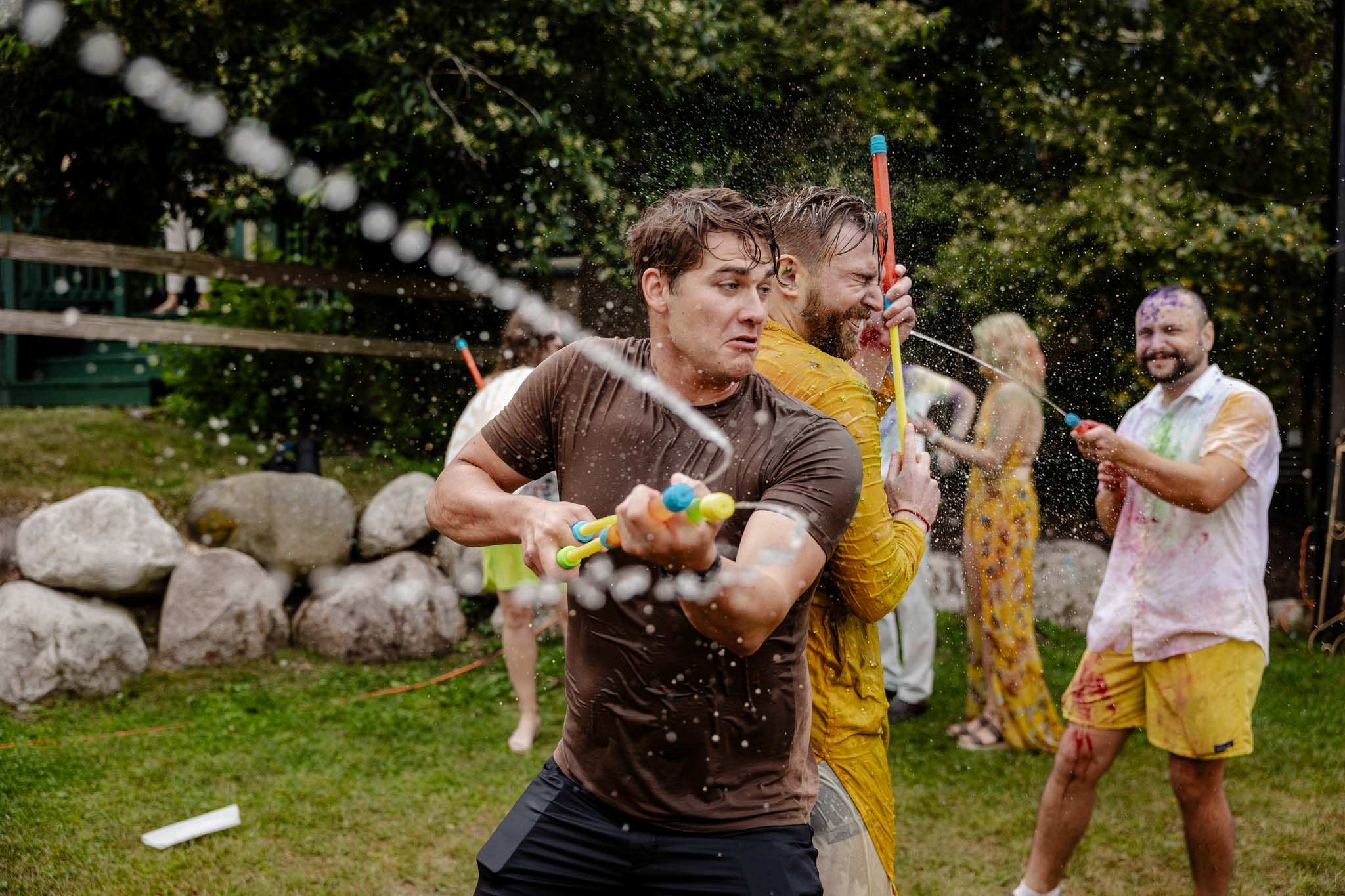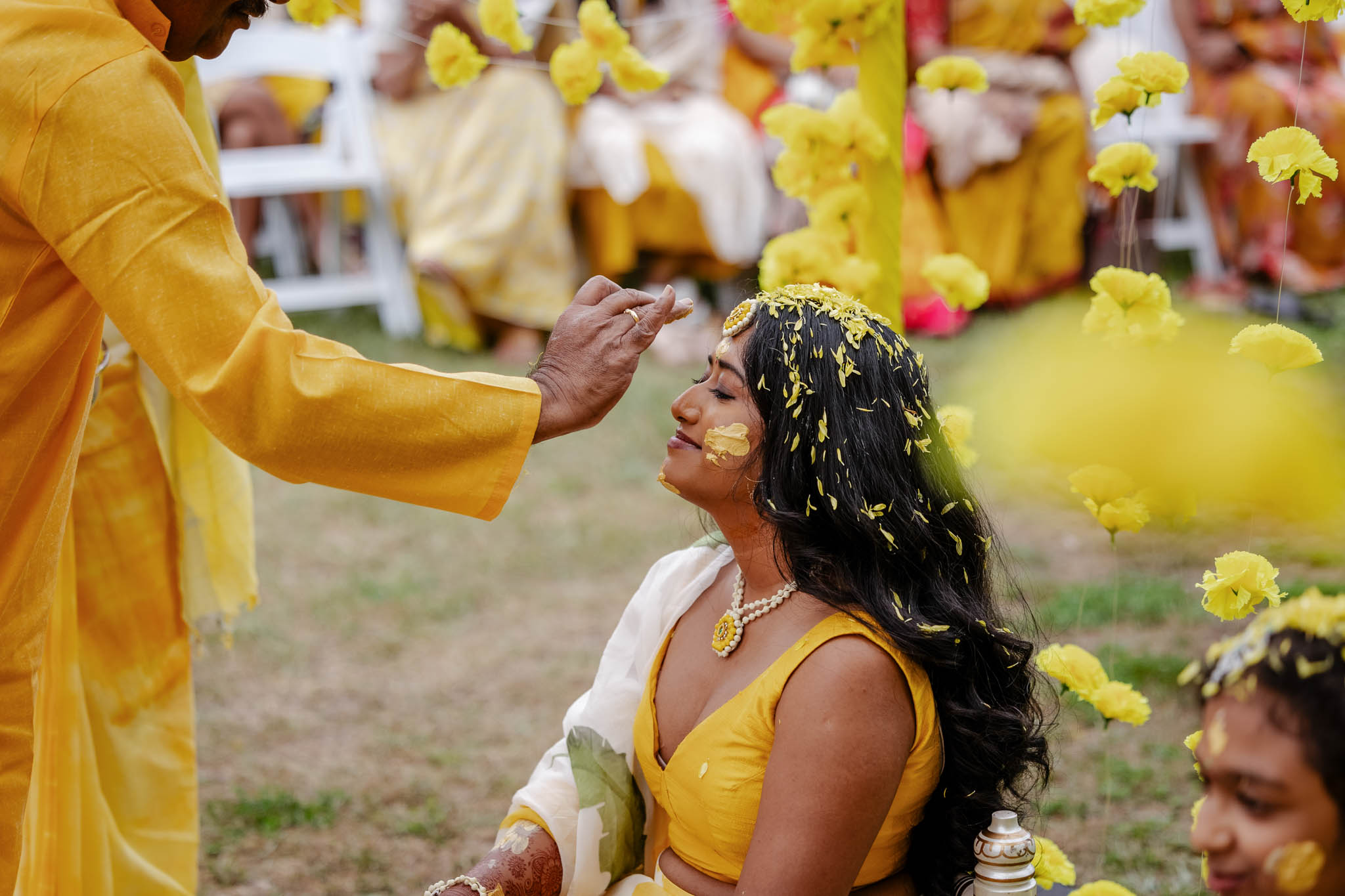 This is our first time shooting a wedding here. Lake Geneva is an upscale destination, and it’s a privilege to work here. It’s about an hour away from Chicago but located in a different state—Wisconsin.T he wedding lasted for three days, and the first day was really exciting. In the morning, there was the Haldi ceremony. A lot of family and friends attended, and everything was in shades of yellow. It ended with water and color splashing. We barely managed to escape without getting soaked and covered in color ourselves! 😊