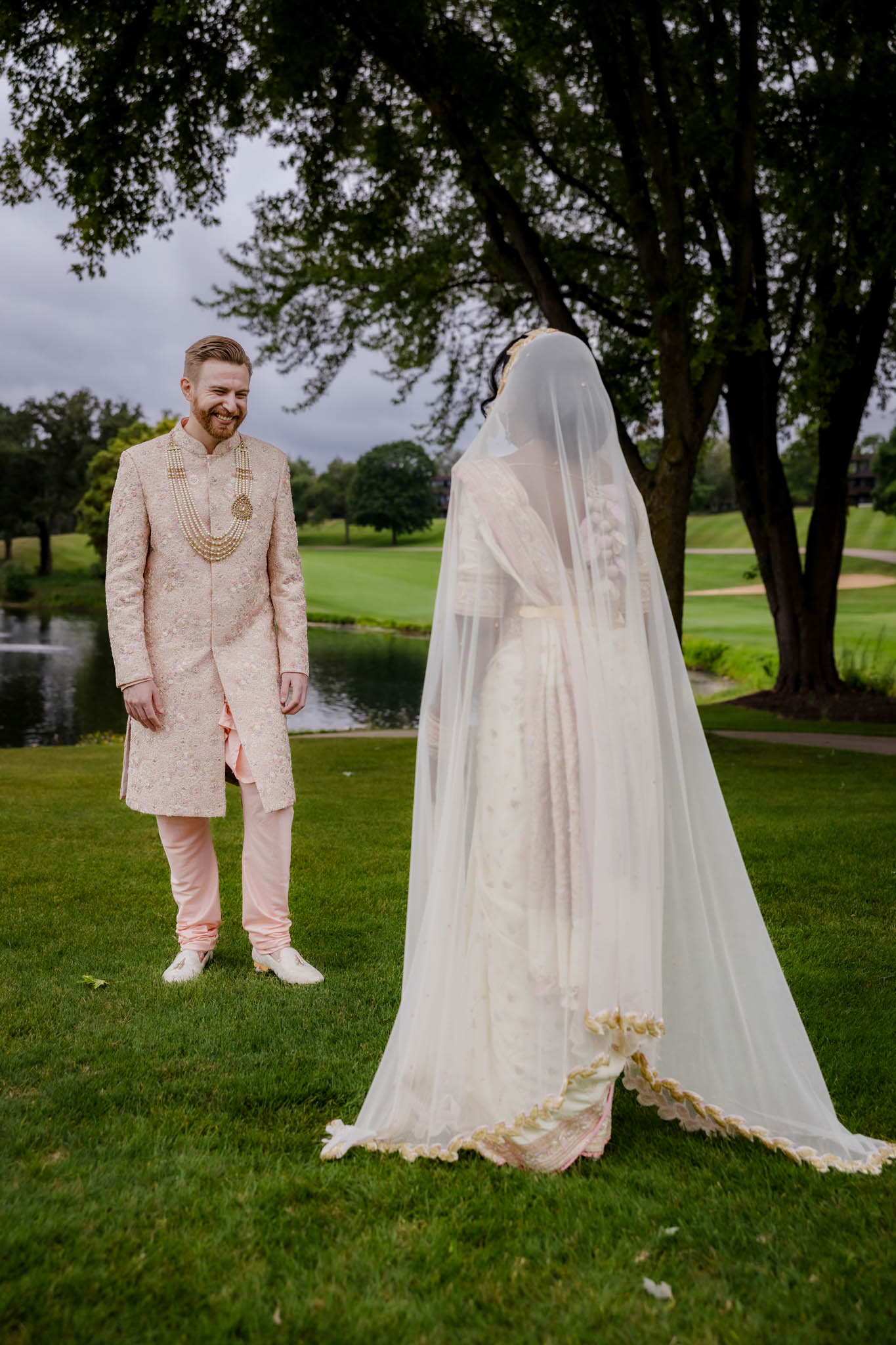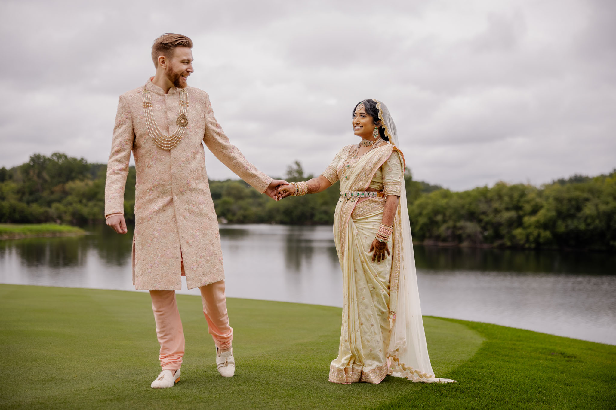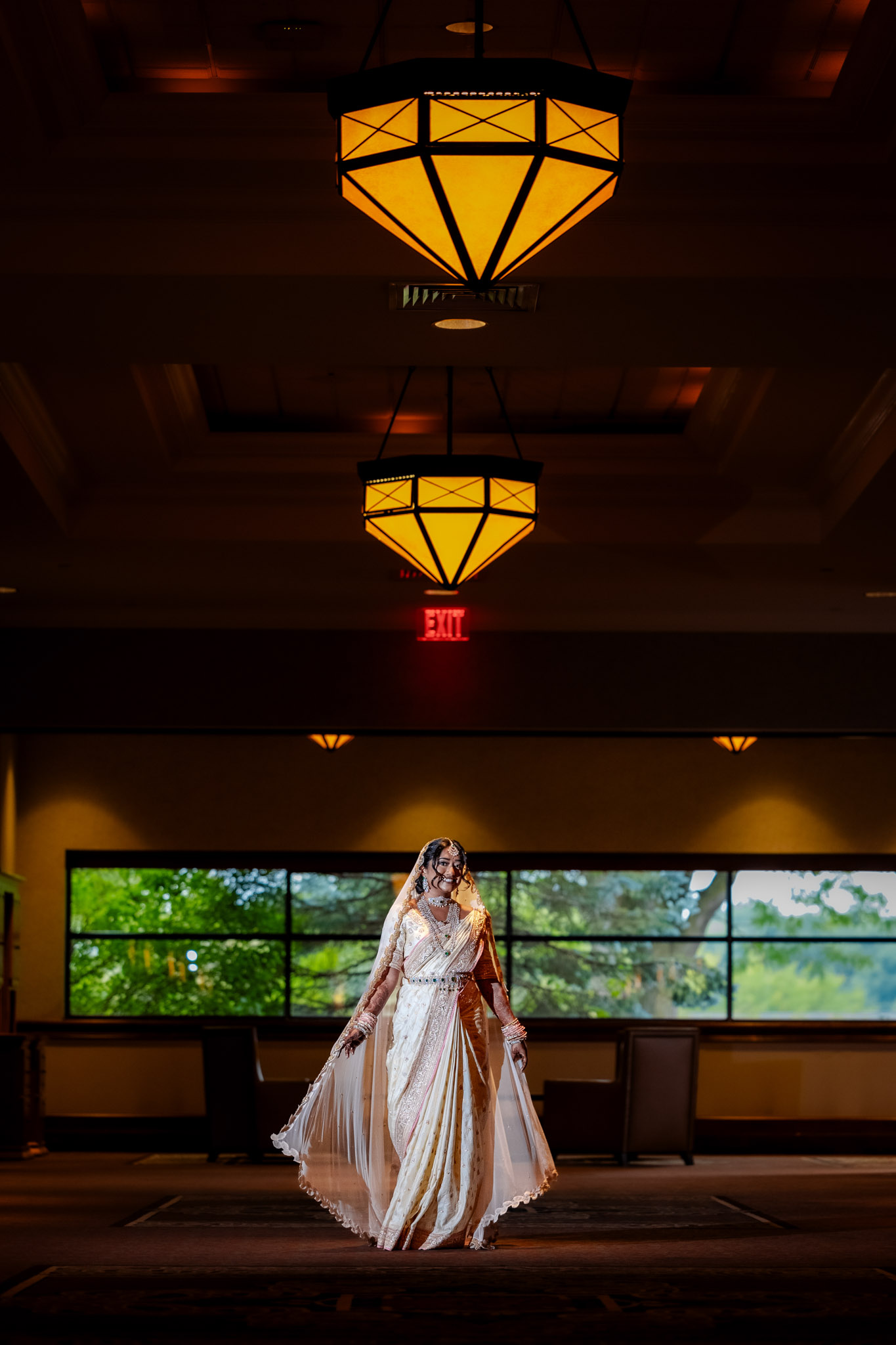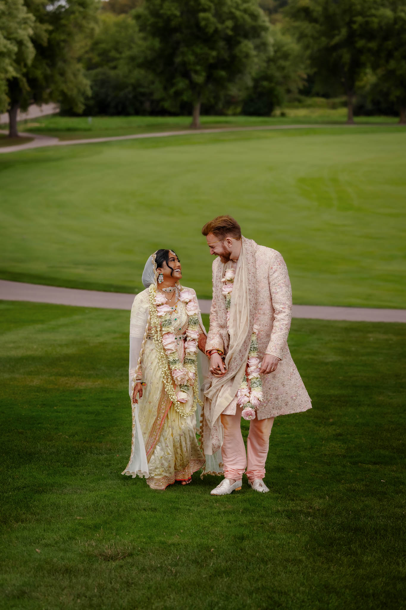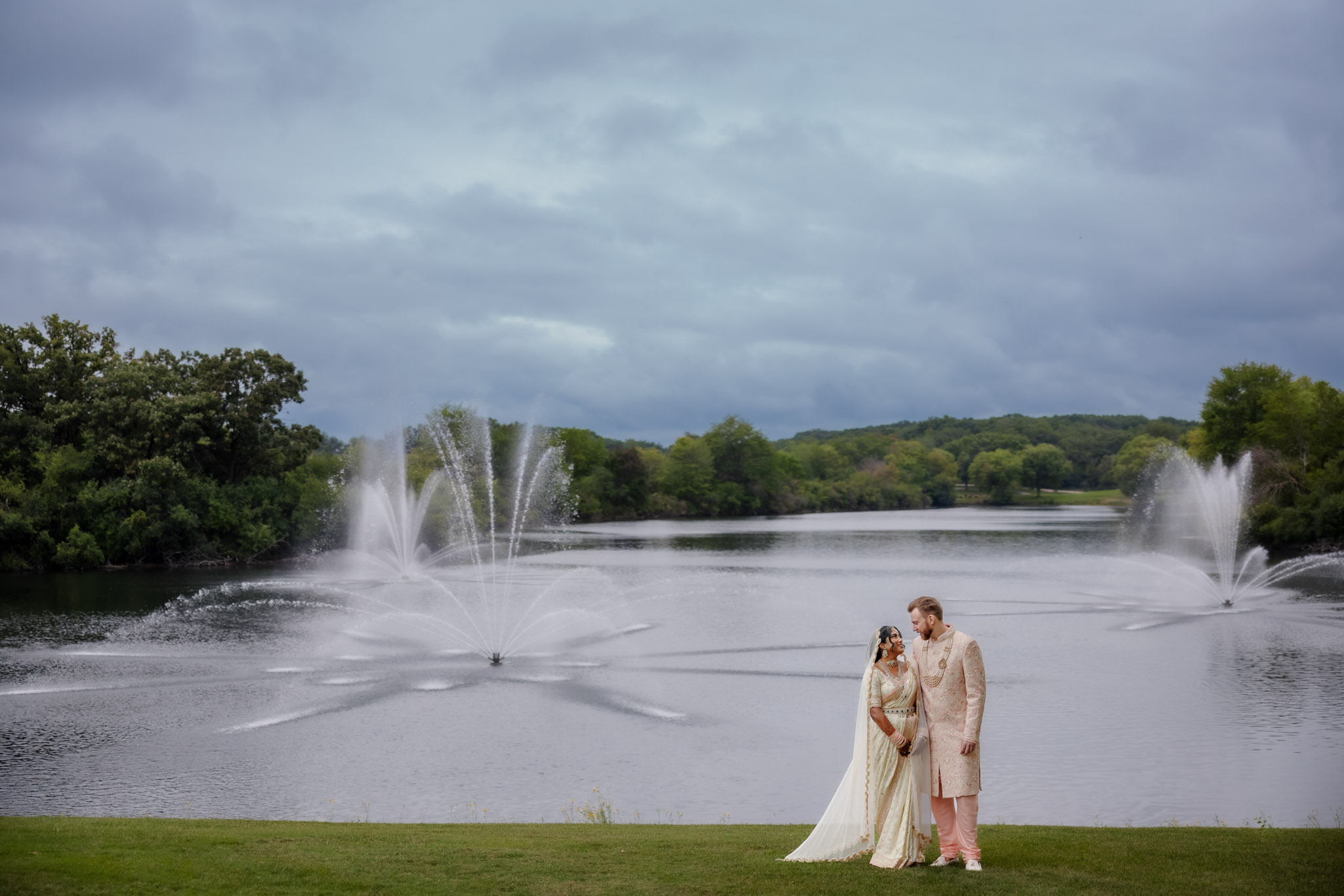 The first evening was reserved for the Sangeet, which took place at the Chalet Wedding Venue. It was a secluded area surrounded by nature, and we took full advantage of it to capture some amazing photos. The second day was dedicated to the Indian ceremony. There was a lot of preparation, and the ceremony took place at the Pavilion Wedding Venue. It was a very emotional experience.The third day was reserved for the American ceremony, with the bride dressed accordingly. In the evening, there was a reception where the bride changed her outfit once again.The reception was held in the Grand Ballroom. We took advantage of the golf courses and lakes to capture stunning couple photos. Highly recommend the Grand Geneva Resort and Spa!