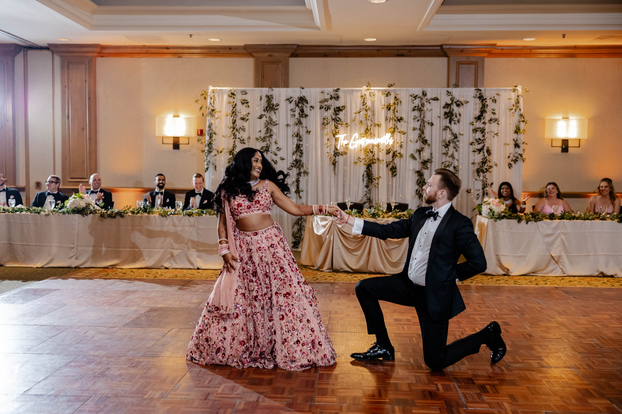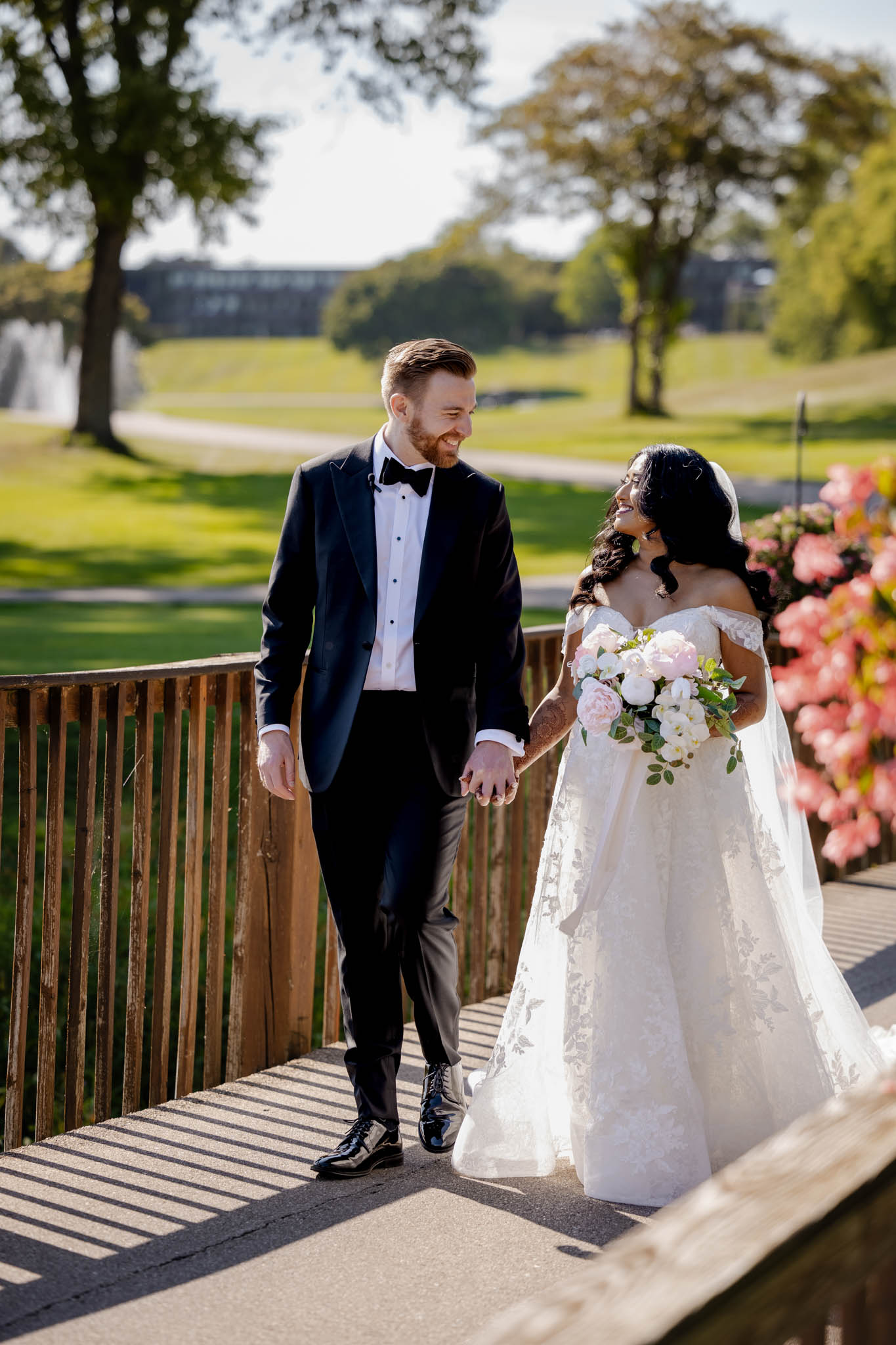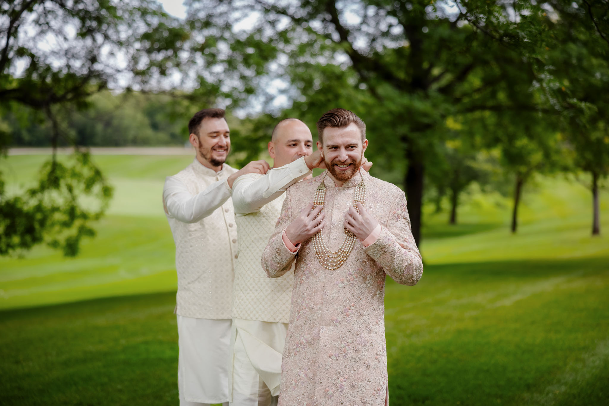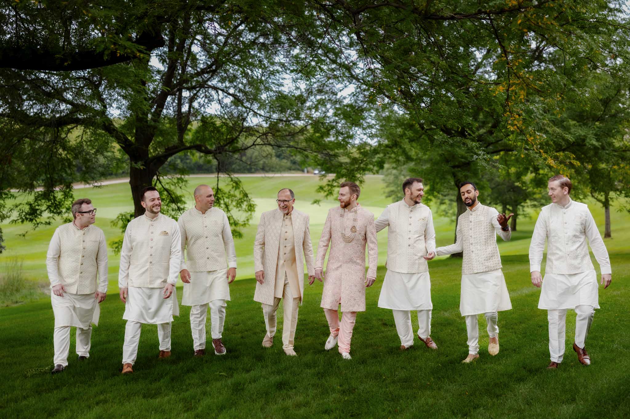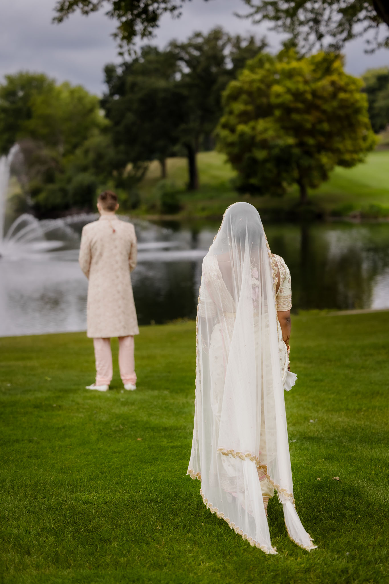 The first evening was reserved for the Sangeet, which took place at the Chalet Wedding Venue. It was a secluded area surrounded by nature, and we took full advantage of it to capture some amazing photos. The second day was dedicated to the Indian ceremony. There was a lot of preparation, and the ceremony took place at the Pavilion Wedding Venue. It was a very emotional experience.The third day was reserved for the American ceremony, with the bride dressed accordingly. In the evening, there was a reception where the bride changed her outfit once again.The reception was held in the Grand Ballroom. We took advantage of the golf courses and lakes to capture stunning couple photos. Highly recommend the Grand Geneva Resort and Spa!