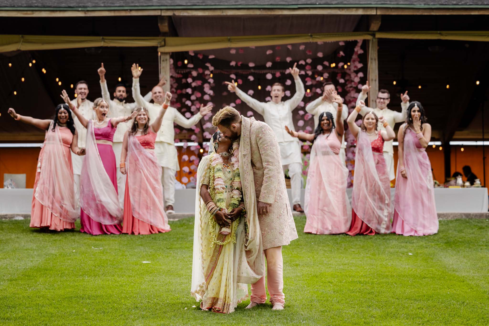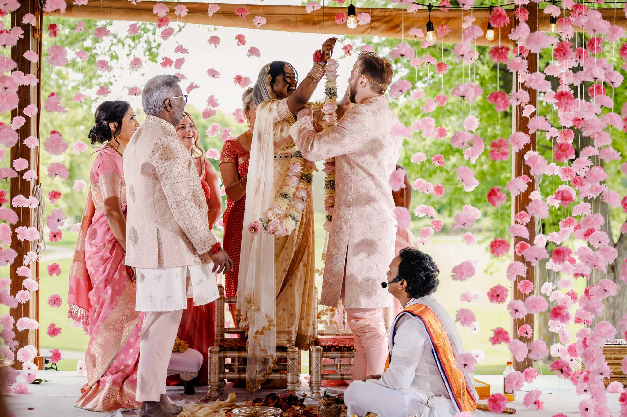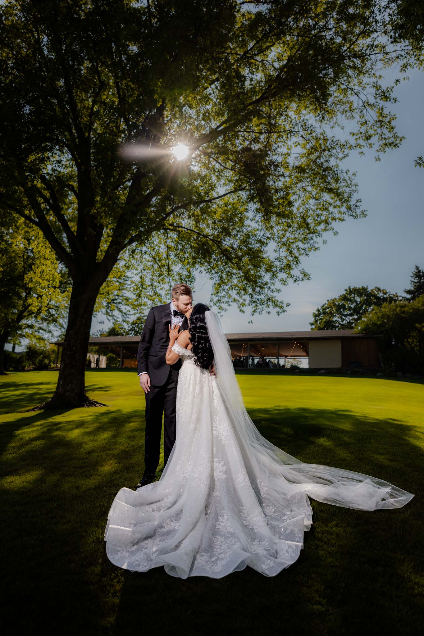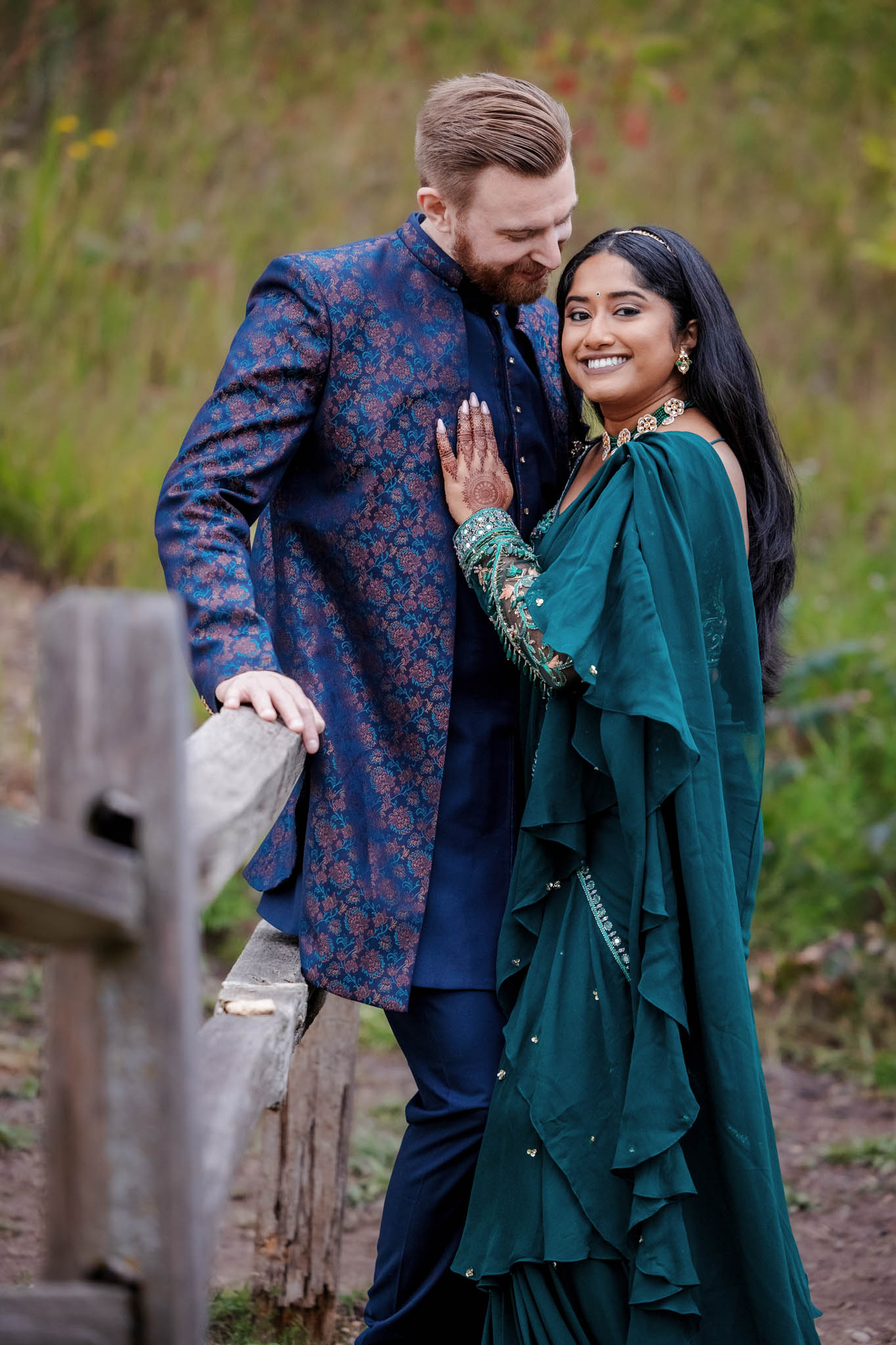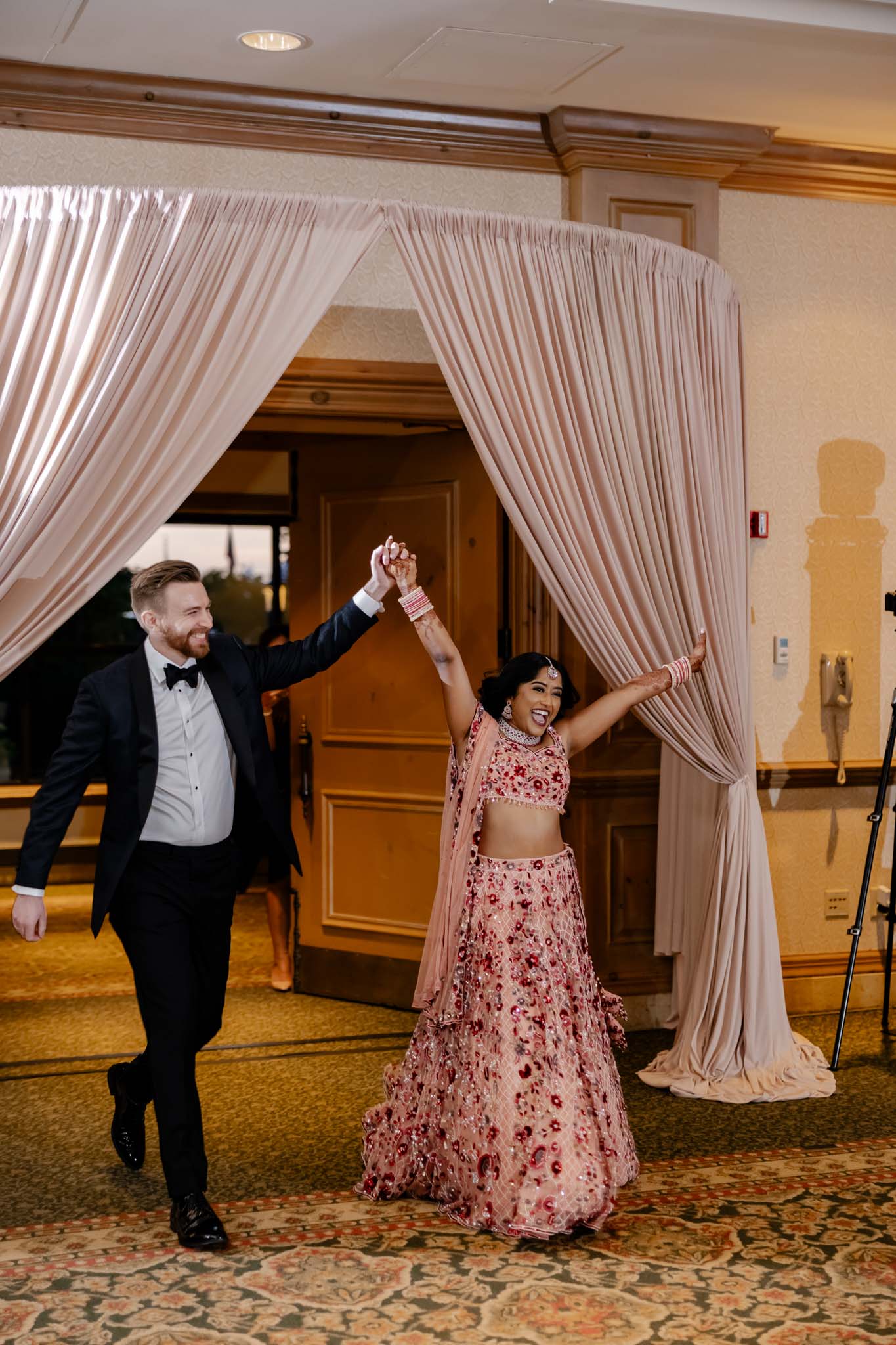 The first evening was reserved for the Sangeet, which took place at the Chalet Wedding Venue. It was a secluded area surrounded by nature, and we took full advantage of it to capture some amazing photos. The second day was dedicated to the Indian ceremony. There was a lot of preparation, and the ceremony took place at the Pavilion Wedding Venue. It was a very emotional experience.The third day was reserved for the American ceremony, with the bride dressed accordingly. In the evening, there was a reception where the bride changed her outfit once again.The reception was held in the Grand Ballroom. We took advantage of the golf courses and lakes to capture stunning couple photos. Highly recommend the Grand Geneva Resort and Spa!