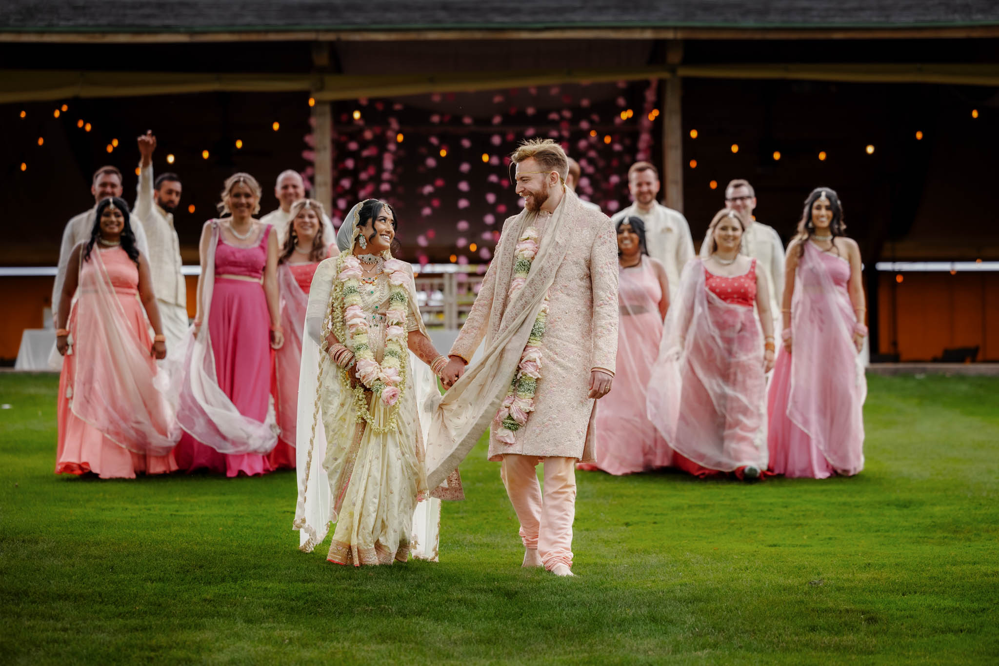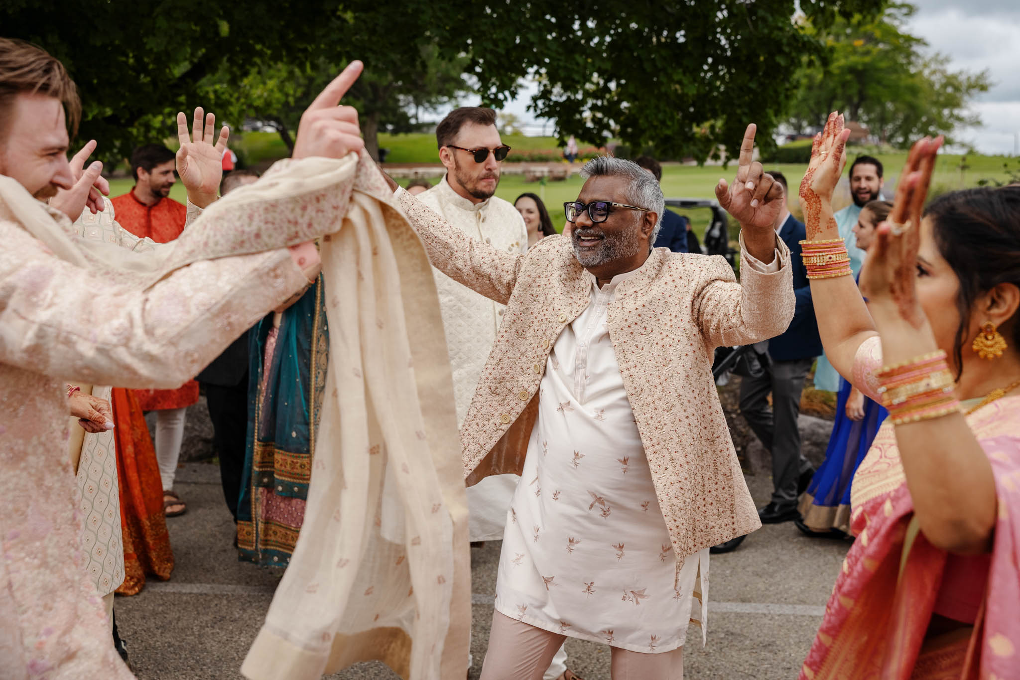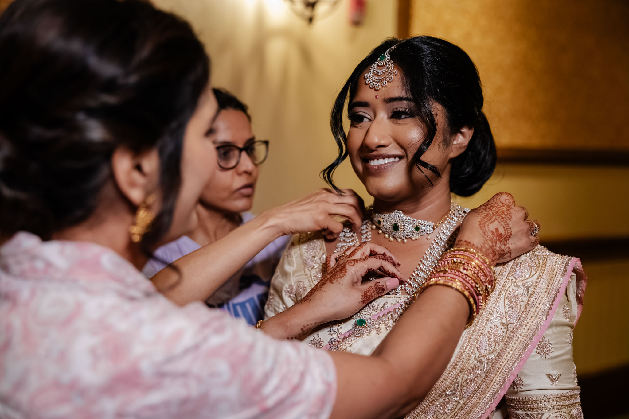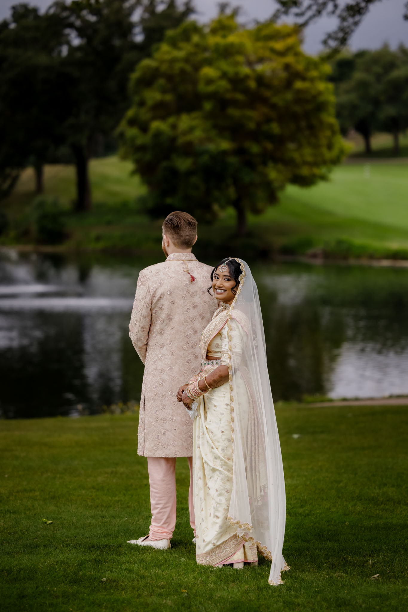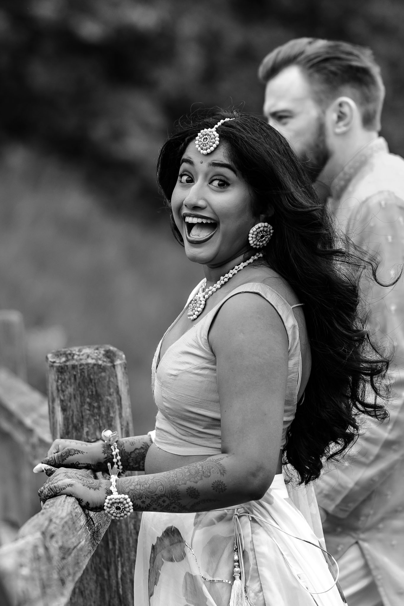 The first evening was reserved for the Sangeet, which took place at the Chalet Wedding Venue. It was a secluded area surrounded by nature, and we took full advantage of it to capture some amazing photos. The second day was dedicated to the Indian ceremony. There was a lot of preparation, and the ceremony took place at the Pavilion Wedding Venue. It was a very emotional experience.The third day was reserved for the American ceremony, with the bride dressed accordingly. In the evening, there was a reception where the bride changed her outfit once again.The reception was held in the Grand Ballroom. We took advantage of the golf courses and lakes to capture stunning couple photos. Highly recommend the Grand Geneva Resort and Spa!