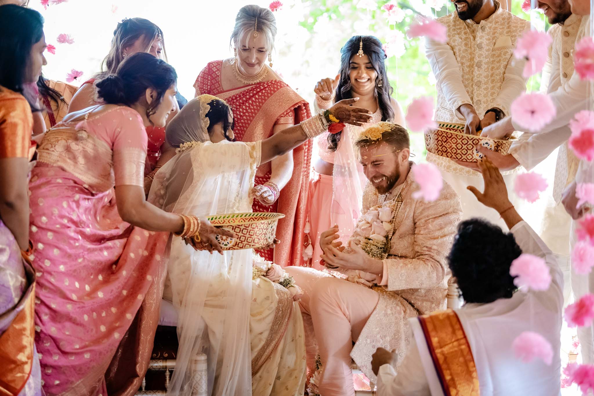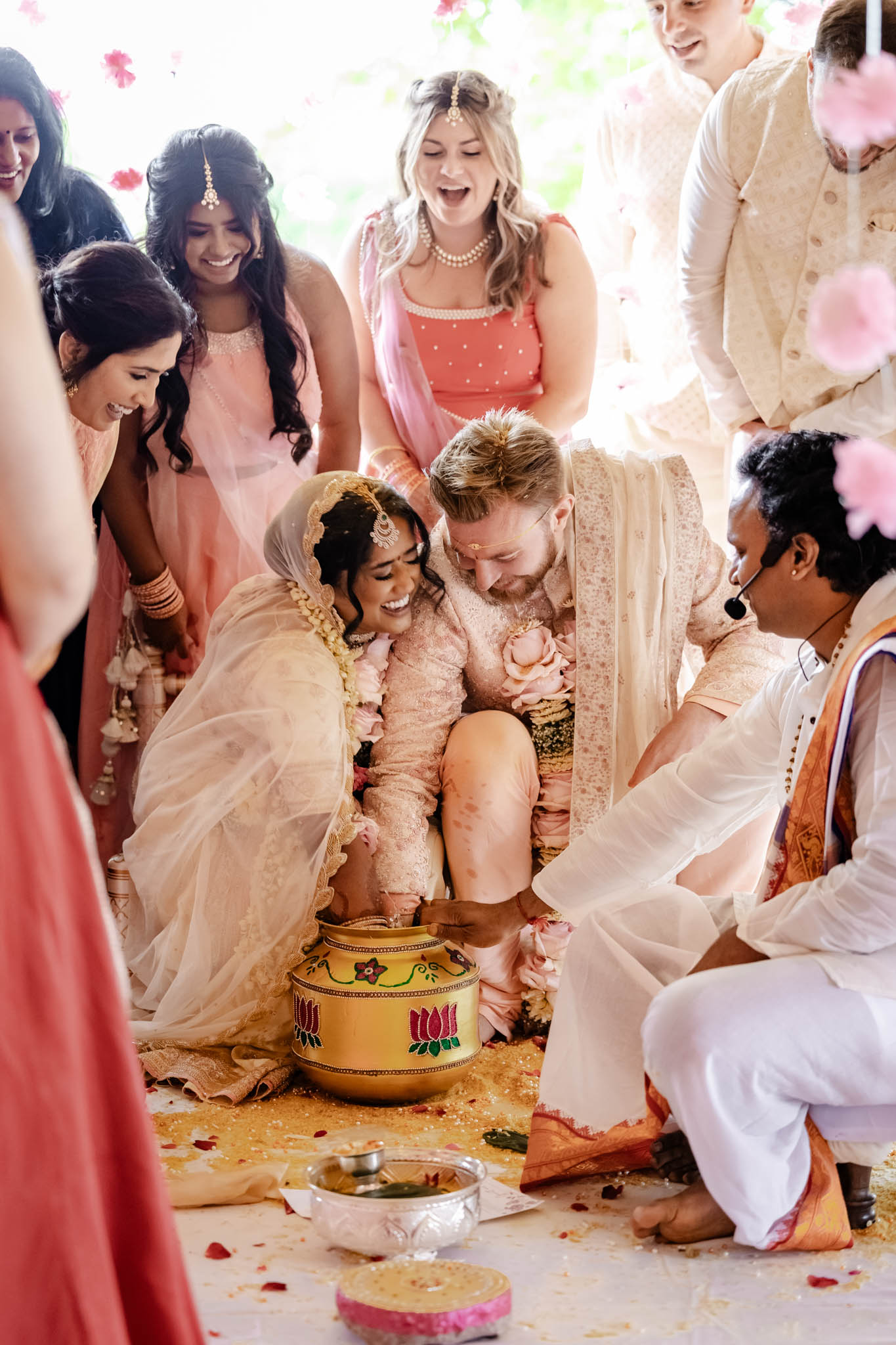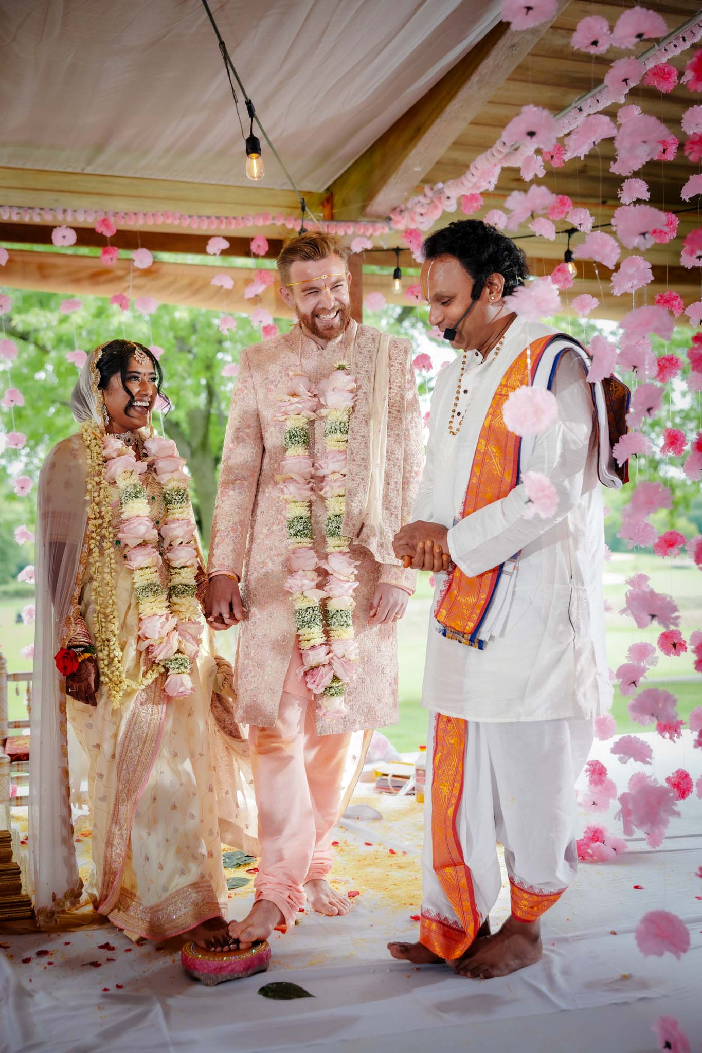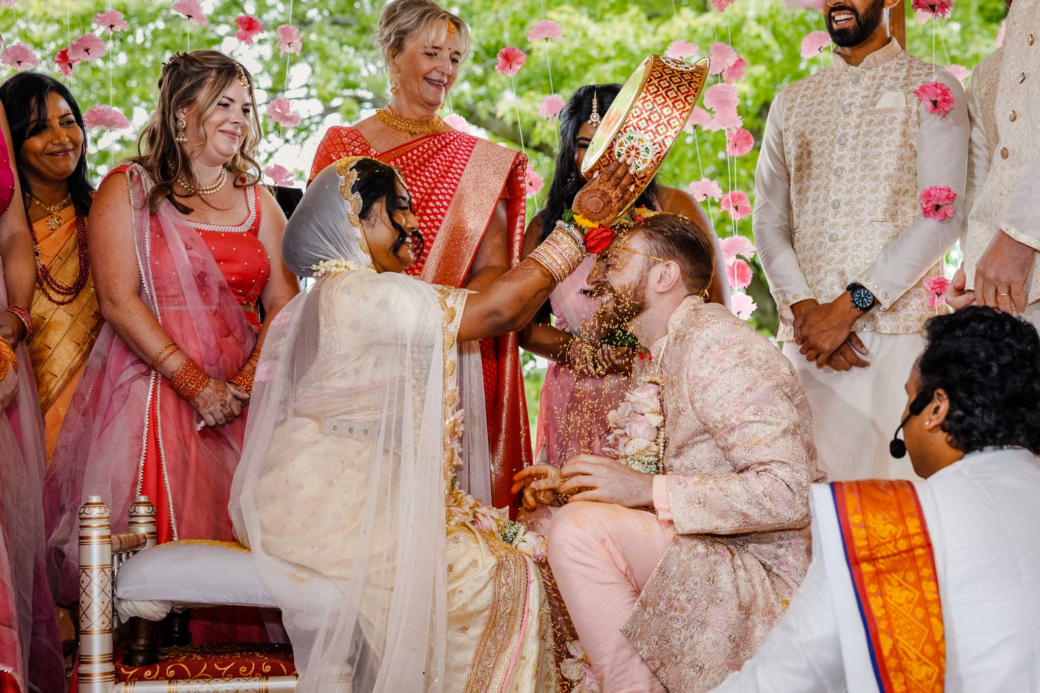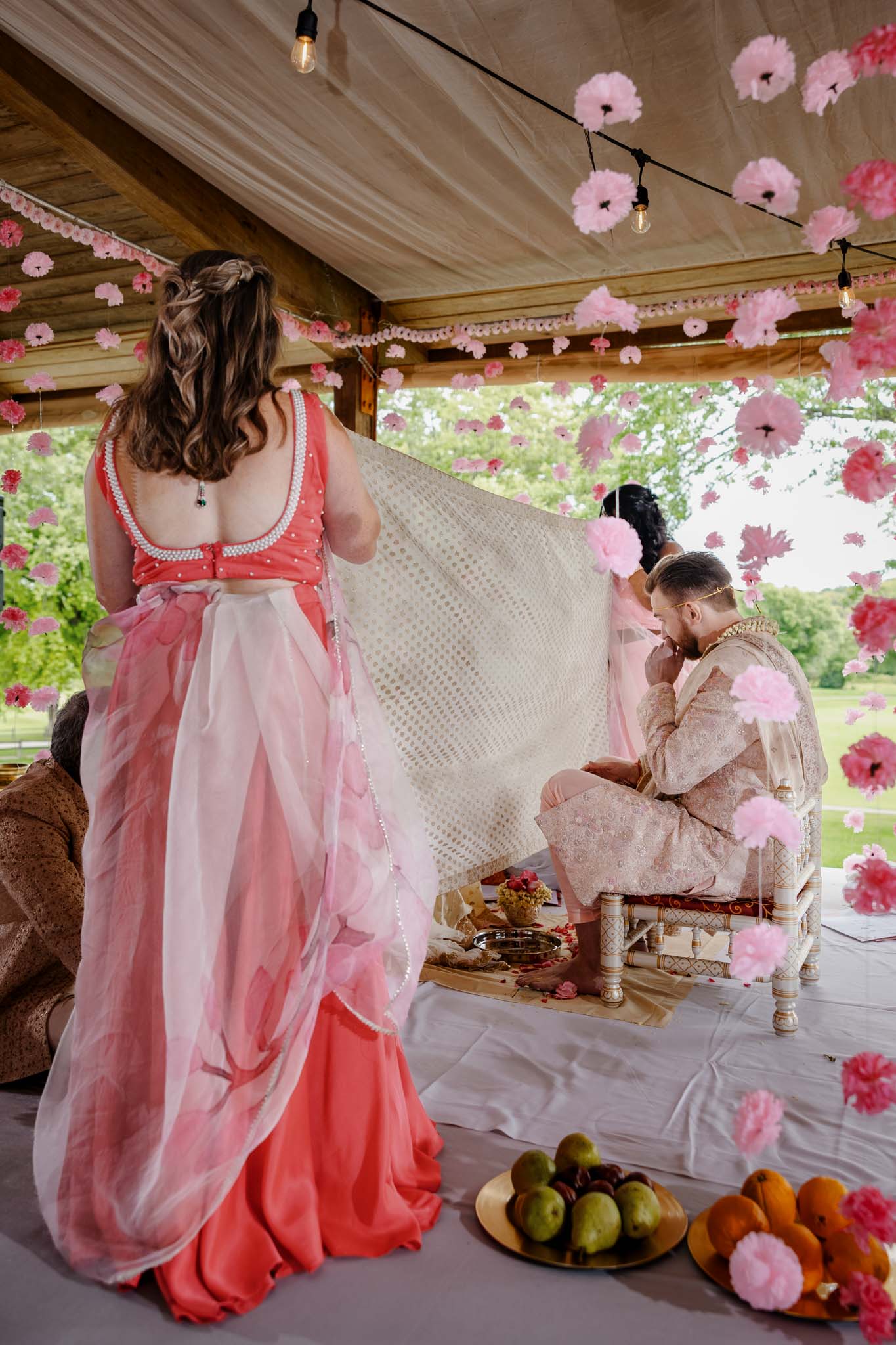 The first evening was reserved for the Sangeet, which took place at the Chalet Wedding Venue. It was a secluded area surrounded by nature, and we took full advantage of it to capture some amazing photos. The second day was dedicated to the Indian ceremony. There was a lot of preparation, and the ceremony took place at the Pavilion Wedding Venue. It was a very emotional experience.The third day was reserved for the American ceremony, with the bride dressed accordingly. In the evening, there was a reception where the bride changed her outfit once again.The reception was held in the Grand Ballroom. We took advantage of the golf courses and lakes to capture stunning couple photos. Highly recommend the Grand Geneva Resort and Spa!